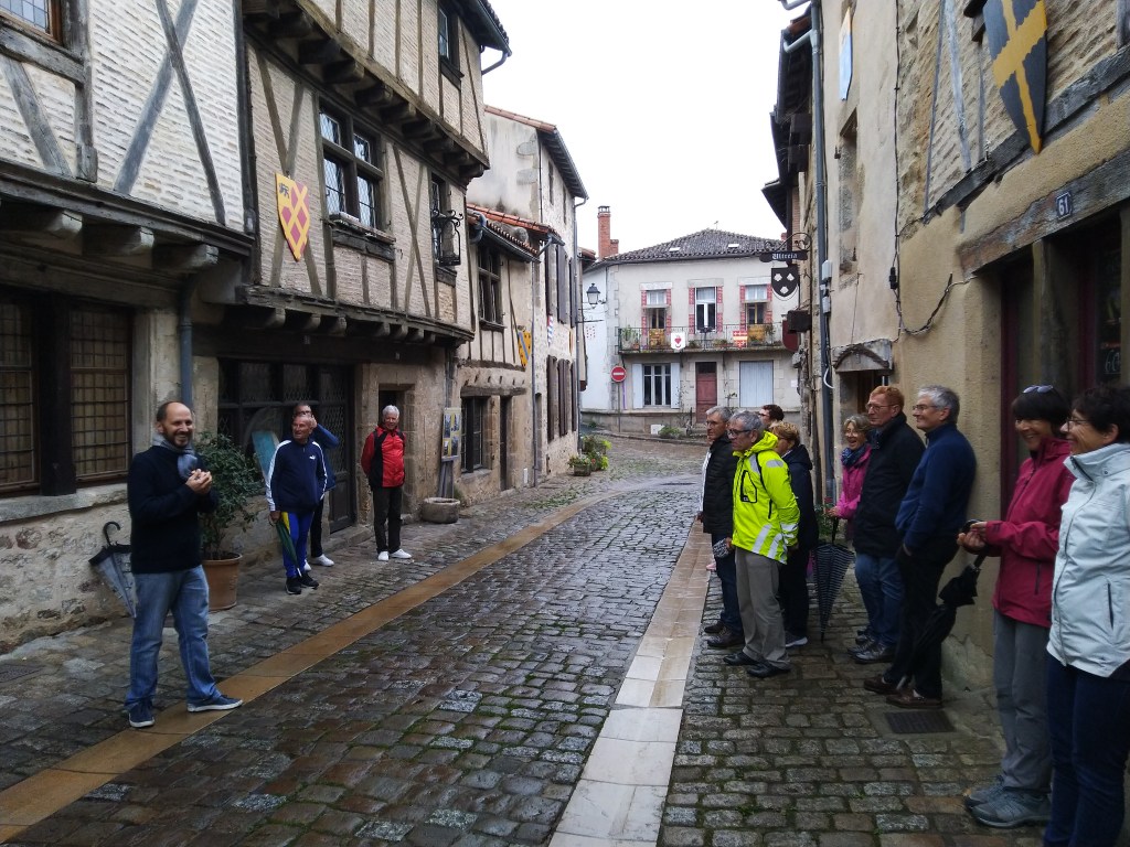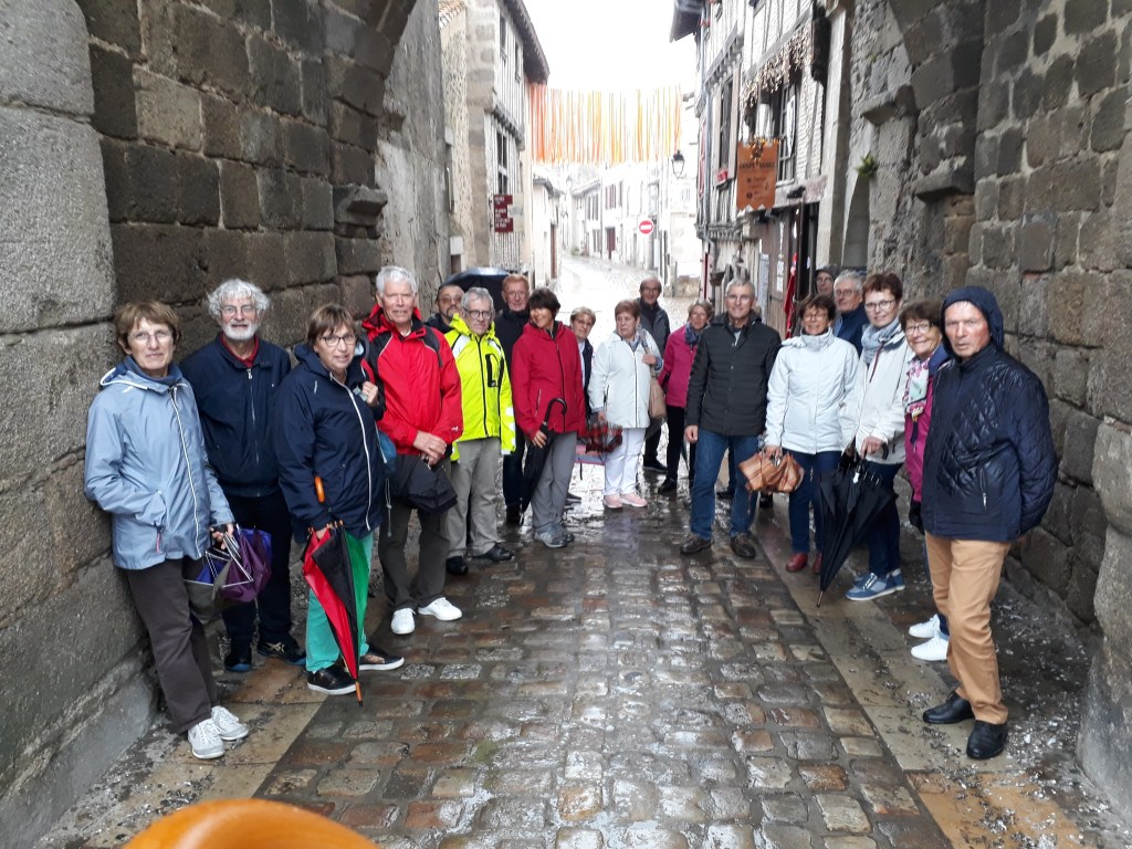10 cyclos et 12 marcheurs se sont retrouvés à Parthenay pour notre journée automnale. Le circuit proposé par Alain nous a fait découvrir de petites routes vallonnées de Gâtine sous de petites pluies dignes du massif armoricain. Nos marcheurs, emmenés par Viviane, ont également apprécié les petits sentiers ombragés. Au retour nous avons été reçu chez Jean-Claude et Colette pour prendre l’apéritif offert par nos guides. Après un déjeuner à la brasserie le Pélican, Vincent du Service patrimoine nous a commenté avec humour le quartier médiéval avec son Château, sa Porte et la rue de la Vau St-Jacques, ses maisons à pans-de-bois, constructions à encorbellement avec au RDC la boutique avec de larges ouvertures. Merci à Alain pour cette organisation.