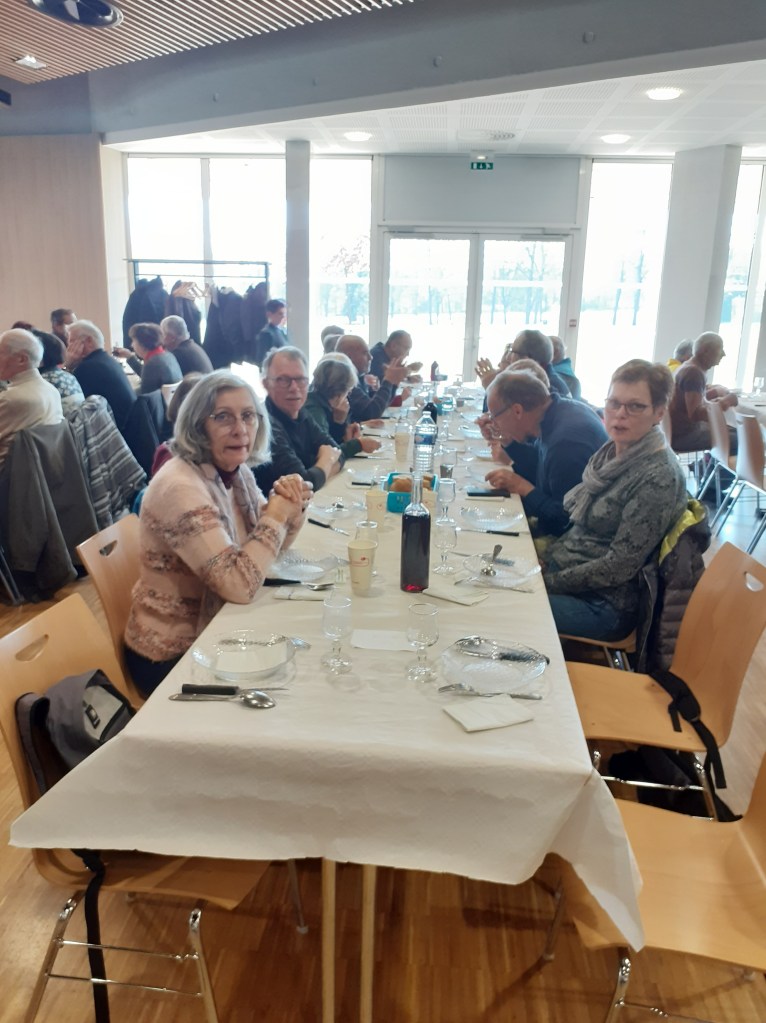 Dimanche 12 février par une belle matinée un peu fraiche mais bien ensoleillée nous sommes 18 adhérents de l’ACN parmi les 500 participants à la randonnée du Thouet organisée par les Joyeux Randonneurs Gâtinais. Plusieurs circuits marche et VTT sont proposés. En ce qui nous concerne ce sera marche sur de beaux chemins proches de la ville pour rejoindre le ravitaillement au pied de l’église St Pierre à Parthenay le Vieux. Les circuits empruntés nous permettent la découverte du patrimoine avec un vaste panorama sur les trois enceintes de la ville fortifiée, des coteaux ou escaliers à grimper et toujours proches des remparts sauvegardés. Cette randonnée se clôturera par un bon « pot au feu » dans cette belle salle du domaine des Loges. C’est toujours avec plaisir que nous retrouvons nos amis des autres clubs.