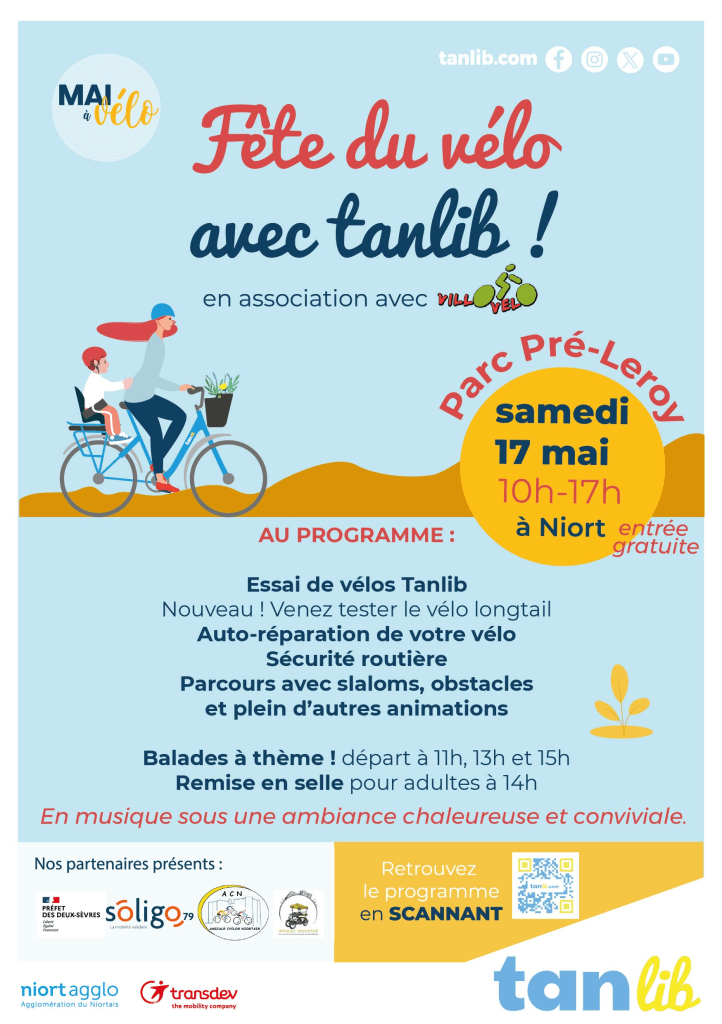 Retrouvez-nous demain, samedi 17 mai de 10h à 17h dans le parc de Pré-Leroy pour une nouvelle fête du vélo ! Dans le cadre de Mai à vélo nous organisons cet évènement avec tanlib et vous pourrez y profiter :